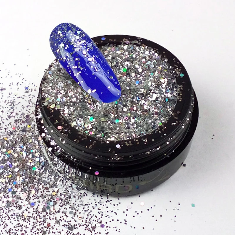 Lækker holografisk glitter i et mix af 2 størrelser. De små glitterstykker udfylder mellemrummene mellem de store og gør, at de ikke er gennemsigtige, f.eks når du bruger den til dækning af en hel negl.