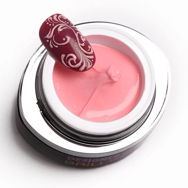 Designer gel hærder op uden sticky layer og er tæt i konsistensen, så den flyder ikke ud mens du arbejder med den. Farverne i designer gel kollektionen er alle klare og kraftige og kan også bruges til contouring og fineline nailart.